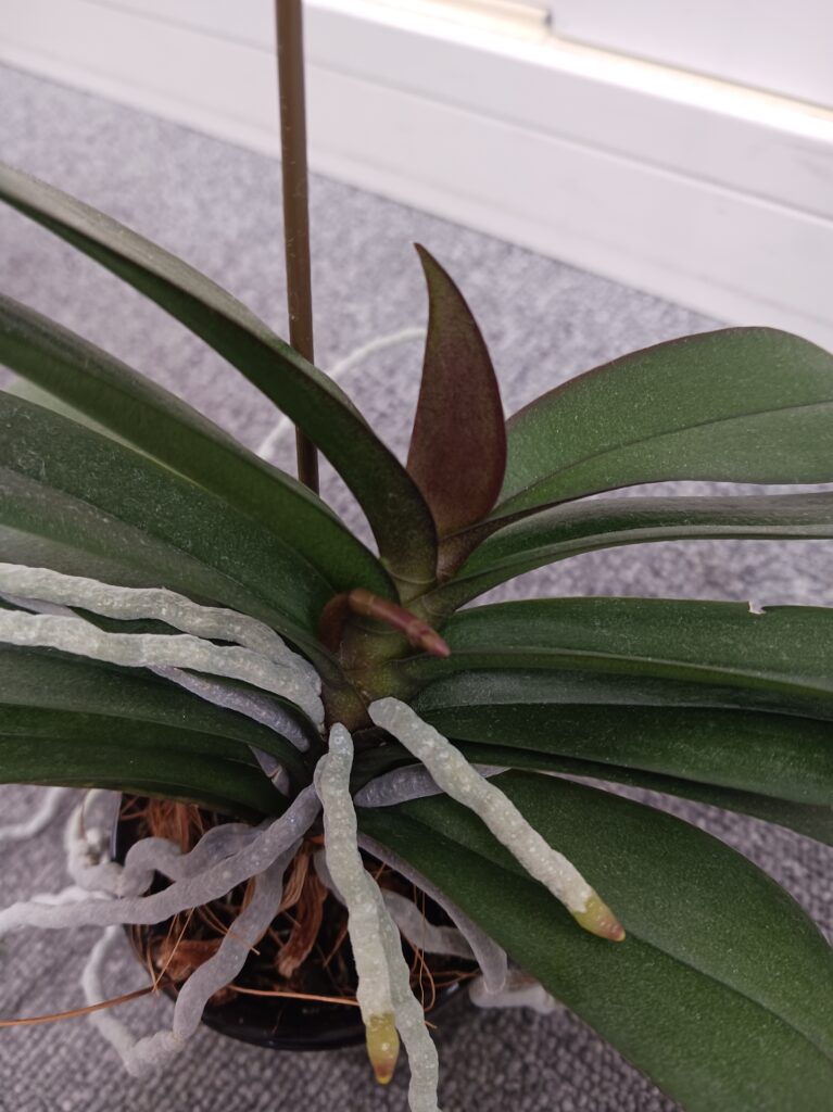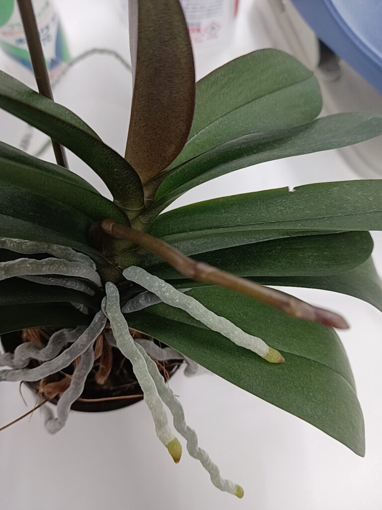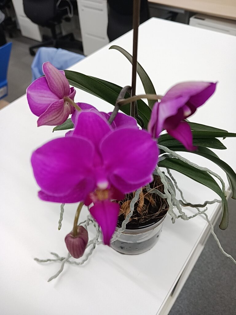 こちらはミニ胡蝶蘭を3年掛けて開花させた事例になりますが、ミニ胡蝶蘭は大きい胡蝶蘭に比べると咲かせるまでに年月が掛かりますが、通常のオフィスで大輪の胡蝶蘭の場合は1年位でポンポン新芽が出てきます。